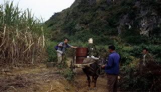 可是在這部影片中,最令我感動的是,潘教授帶領學生們在秦嶺地區的研究,裝備都是非常克難的。他們在秦嶺的研究基地,是由一個伐木營站改建而成,周圍都是樹林、山坡、田地,僅有一條小路可通。研究地點相當偏遠,從北京大學出發,搭火車數日輾轉,來到陝西(經費關係,可不坐快車),下火車以後,開著那年代不怎麼耐操的吉普車,穿越霧氣裊裊的山路,開上半天,才能來到研究站。來到研究站以後,一待就是幾個月,為的就是追蹤他們的研究目標,一頭母貓熊「嬌嬌」。每天就是要沿著沒有人走過的野地,透過無線電發報器定位、攀山越嶺、披荊斬棘、找尋貓熊的位置和移動方位(戴在貓熊脖子上的定位頸圈,一個要 350 美金,戴在十幾隻貓熊身上,經費也是潘教授自行借錢籌措而來),找到了貓熊以後,小心翼翼的接近牠(野生大貓熊有野性,若是發怒,會對人造成嚴重傷害;潘教授花了四年時間和「嬌嬌」培養感情和默契,成為可信任的朋友,才能近距離接近「嬌嬌」),所有的裝備就是很基本:研究生手上的一台機械式單眼相機,還有潘教授手上的筆記本。當「嬌嬌」產下幼仔時,潘教授和呂植趁牠外出覓食,進入洞穴把幼仔抱出來,判斷性別、量身高、體重、心跳、還有一切的生物學記錄。在為貓熊幼仔量體重時,他們的器具竟然僅僅是根桿秤,那個我們現在在菜市場都不容易看到的古老東西,卻是他們的研究工具,大貓熊幼仔從洞中抱出,就用布包著,掛在上面量體重,我看了很震撼。
