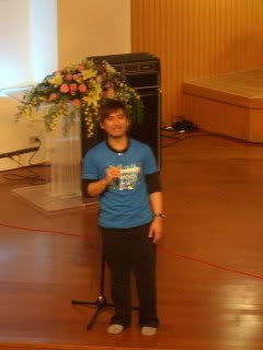 一開始的大堂課程,天韻帶領大家唱詩歌,就是許牧師和溫弟兄。司琴是雅慧姐,她是天韻的大才女之一,為此我特別留意她的彈法,發現到對鋼琴這種樂器以及對位和絃的熟悉,我實在是不能比,該去好好上課!一首很簡單,在教會團契很常被選唱的「我要頌揚」,雅慧姐把它彈得像開車旅行那種蹦蹦跳跳的感覺,配合許牧師在台上充滿活力的帶領,好妙!第三首是我們在聖誕節才唱過的「神的道路」,這可是天韻的招牌歌;幾年來在教會唱過好幾次的「神的道路」,但總是感覺不如天韻現場演唱時特有的那種「感動」。