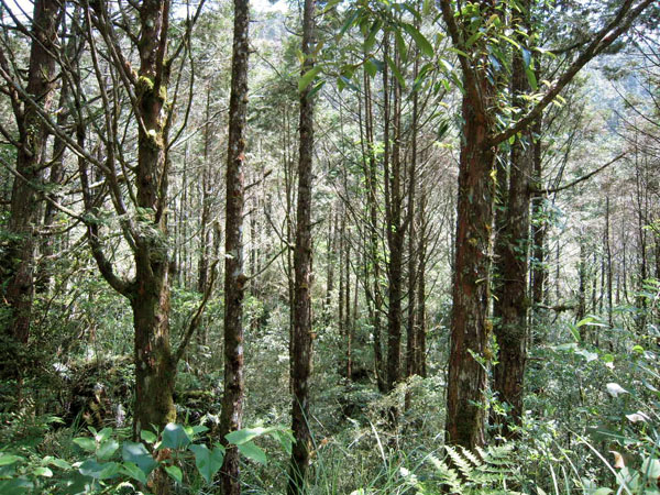 下車步行進入翠峰湖步道,沿路的森林也是相當原始,除了步道本身是人工以外,這幾乎是個完全「自然」的環境(可惜遊客多了點)。在海拔超過兩千公尺的山上,我的追蹤本能又再度被引發,一路走下來,我聽到好幾隻小鶯(也是我手機的來電鈴聲之一),一隻疑似茶腹鳾。這裡其實還不算原始林,人為干擾還是很多(太多遊客經過造訪),不然在這樣的環境之下,我真的很想要能夠看到一隻田鼠或黃鼠狼什麼樣的小動物跑過我的腳旁,可惜沒有成真。