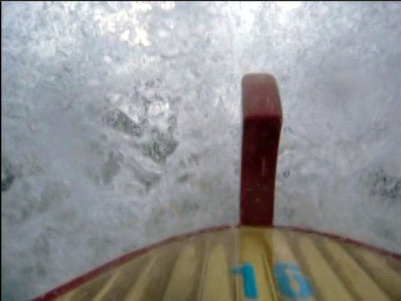 即將掉下第二個滑水道前,船上的人無不繃緊神經預備迎接撞擊,這是真的讓人有想逃避的時刻