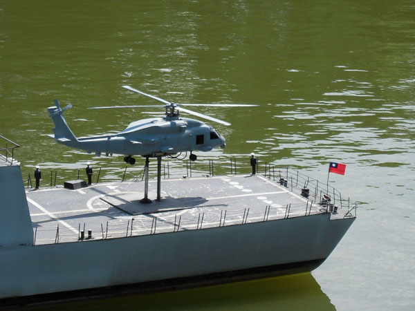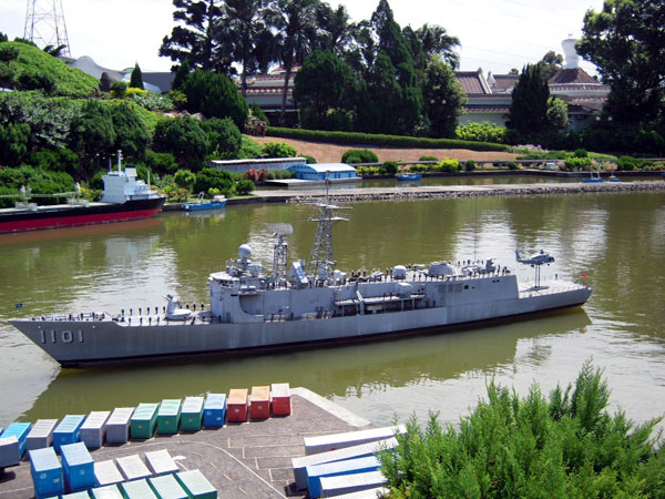 軍艦也更新了,現在居然可以看得到成功級的二代軍艦,而且還個別有專屬的編號,成功艦與鄭和艦兩艘停泊在小人國裡,在更新上還滿用心的。將近二十年前我小時候到小人國,那時的軍艦可沒有直升機停在甲板上。