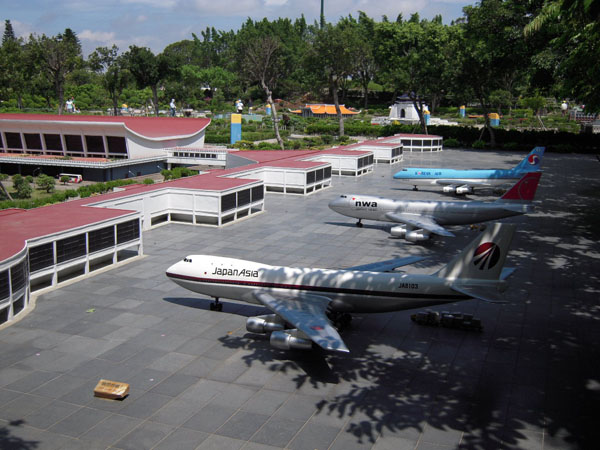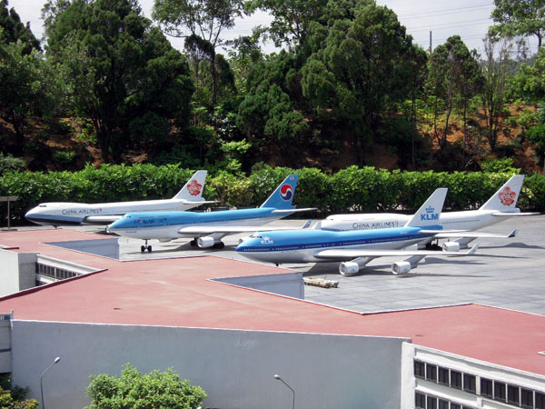 這樣算起來,「十大建設」年代的產物都集中在小人國,石門水庫、高雄港、縱貫鐵路、中正機場等等。當然華航也更新了,機尾漆著粉紅梅花,小時候華航還是背國旗,另外這次來沒有看到國泰,小時候的國泰還是三條薄荷綠白相間的塗裝。當時看到還興奮得很。