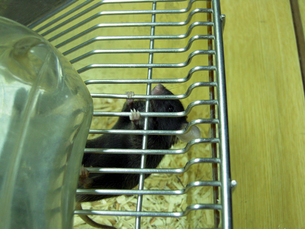 職業病的關係,馬上就能認出老鼠的品種(這種老鼠以前在慈濟用過),實驗室裡有老鼠不稀奇,但我在醫學院的實驗室並不是用這種小黑鼠做實驗,而且居然不知道什麼時候、以及怎麼溜了進來,還那麼巧,在 2010 首日,因為老鼠畏光的天性,鑽進我的褲管才被發現。好了,現在有隻不知從哪間實驗室逃逸的老鼠出現在我的研究室,為了避免書籍和零食被牠吃掉,雖然有實驗要趕,但在這之前一定要趕快抓到牠!