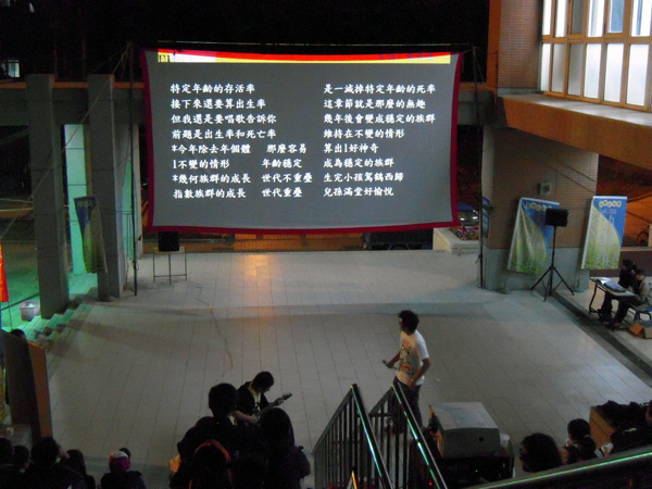 由於報告還沒打完,沒有什麼心情去全程欣賞晚會節目,在會場安靜的一隅坐下來繼續趕報告,打到晚了甚至我錯過最後一班往返彰師大和飯店的接駁車,他們還特地請校方人員專程開車送我去飯店,主辦單位也派人跟車確認我有到達旅館,我非常感謝他們的貼心。