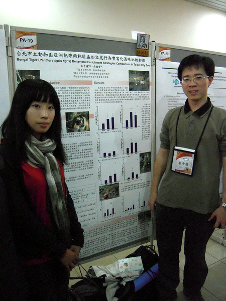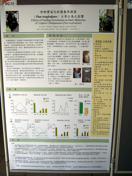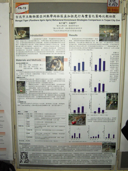 這次動物行為研討會,因為要守著海報講解,有很多精彩的演講主題沒有辦法全程聽取,稍微可惜了一點,最後海報競賽評比,沒有得名,也不意外(畢竟不是正統實驗室出來的行為生態,當然如果有獲獎的話應該算撿到),閉幕式抽獎也沒抽到。不過能有海報發表(研究過程也辛苦了 partner 慧雯),以作者身分與會,已經是滿足了不少成就感,現場如何做為一個優秀的、不卑不亢的解說員,還有從交通來回到住宿的預算,全部自己打點,首次真正體會到什麼叫做「參加研討會」。