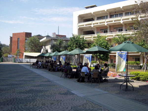 (大會登記住宿附贈早餐券)。一看錶覺得接駁車應該已經過了,問了在場的彰師大工作人員,原來有加開第二班輸運大批與會人員(這間飯店住了多少啊?)。動物園的兩位學姊也下榻這間,吃完早餐等車的期間,我們在 lobby 聊開了。