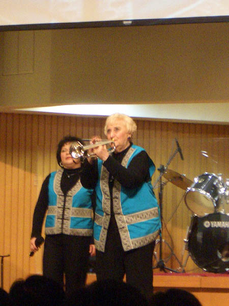 每一個人咬字都字正腔圓,聽起來都像以前徵選廣播劇播音員那種水準,聽起來很舒服。曲子都是團員自行創作,所以每個人都有一番本事,音樂系或音樂碩士的大有人在;再加上他們有一些動作或隊形的採用,整個演出就是非常的生動。不過現在天韻的這批人馬,跟以前的不太一樣,以前我小學時,大家還在唱"是愛"或是"有一件禮物"的時候,那時老團員還在,老牌團員作的詞曲,比較方方正正嚴謹婉約,七八年前天韻來花蓮那一次,正是他們世代交替的時候吧,有些在樂譜上見到的超級實力派老團員,像是葉薇心、王麗玲、祁少麟、林福裕,已經開始轉到別的音樂工作或是專職幕後去了;新的人上來,也帶來的新的風格,現在新的人馬,在歌曲表現上情感就比較奔放了,比較新潮流行風格,各有特色以及優點啦~ ^^。七八年前見到的團員,今天又見面了,感覺很妙,像是天韻現在的男聲主唱許恩賜(也是來自花蓮,原來他就是最近有一位歌手"同恩"的老爹),還有女聲的雅慧姐,因為距今八年前天韻上次來花蓮時,我就對他們兩位的聲音最有印象。我不知道該怎麼形容天韻的歌聲和他們那種...實力,現場合聲完全不對嘴,還沒唱錯音高,是很難的,如果不是團員本身高超的實力是做不到的。如果有人想知道那種感覺的話,真的是要聽現場,或是去買一張CD來聽聽看;另外就是彭蒙惠還真猛,80 歲的年紀,還在現場跟團員合奏了一段小號,也有獨奏,真是了得!